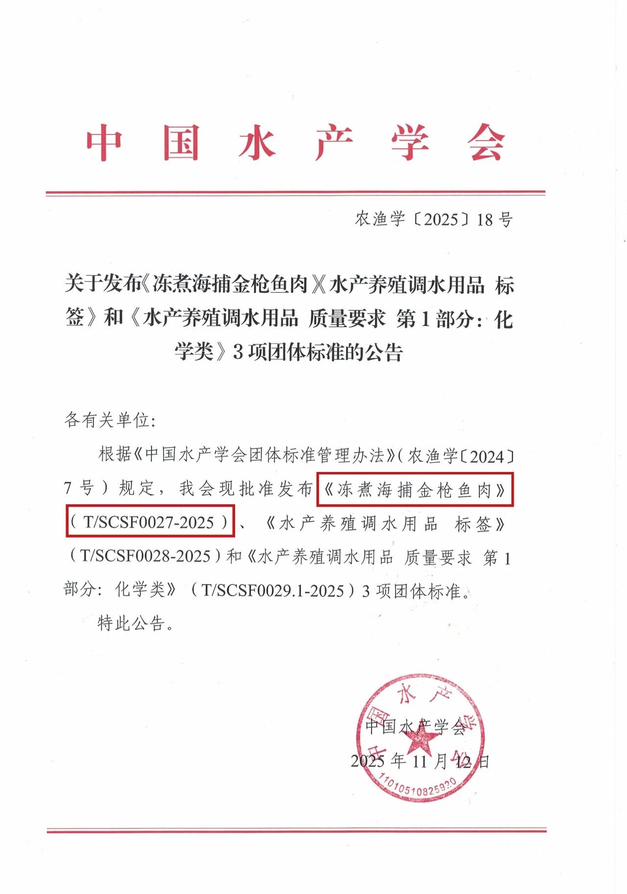 近日,《冻煮海捕金枪鱼肉团体标准(T/SCSF0027-2025)》正式发布。该标准由大洋世家(浙江)股份公司主导,大洋世家(舟山)优品有限公司、浙江兴业集团有限公司、浙江融创食品工业有限公司等企业共同编制完成。