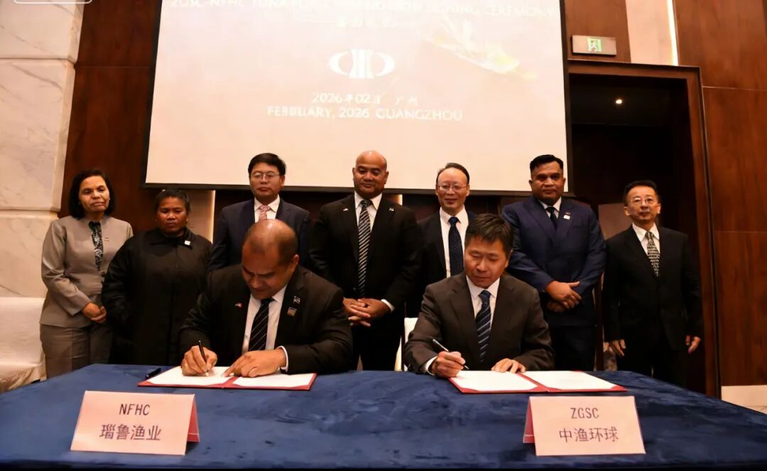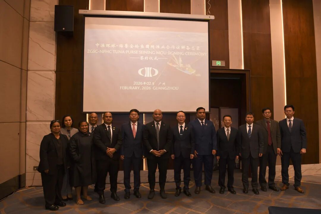 2月9日,中国农业发展集团下属中渔环球海洋食品有限责任公司董事长邓荣成与瑙鲁渔业部长阿里克利克在广州签署合作备忘录,双方将携手深化在远洋捕捞、水产储运与加工等领域务实合作。此次签约将为中瑙渔业互利合作打开新局面、注入新动能,助力两国海洋经济发展、惠及双方民生。