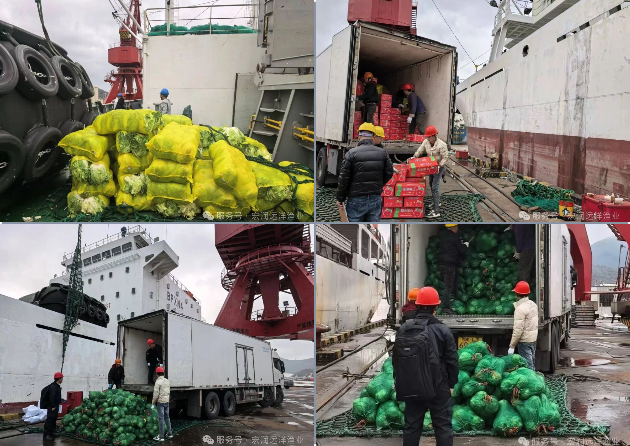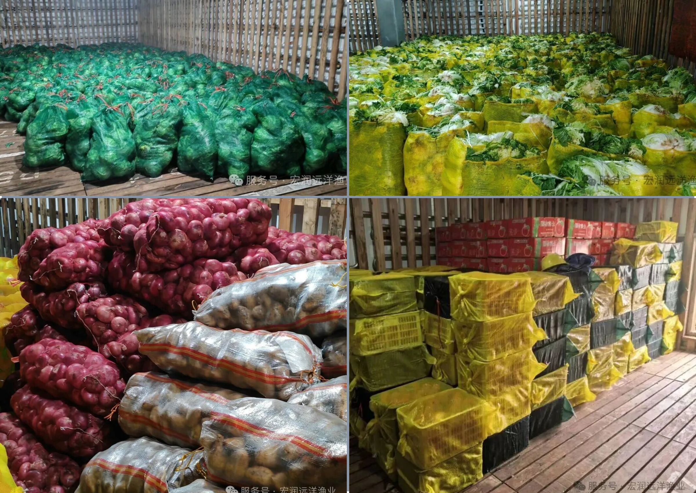 为了让船员们吃到最新鲜、最合心意的蔬果,宏润远洋从源头层层把控:精心筛选耐储存、口感佳的时令品种,无论是清脆的白菜、饱满的洋葱,还是脆甜的苹果、扎实的土豆等,每一颗蔬果都经过严格挑选。从市场精选采购、预冷分装,到冷链转运至“宏润冷2”的冷藏货舱,实现全链条无缝衔接,有效破解远洋渔船 “吃菜难” 的实际难题。