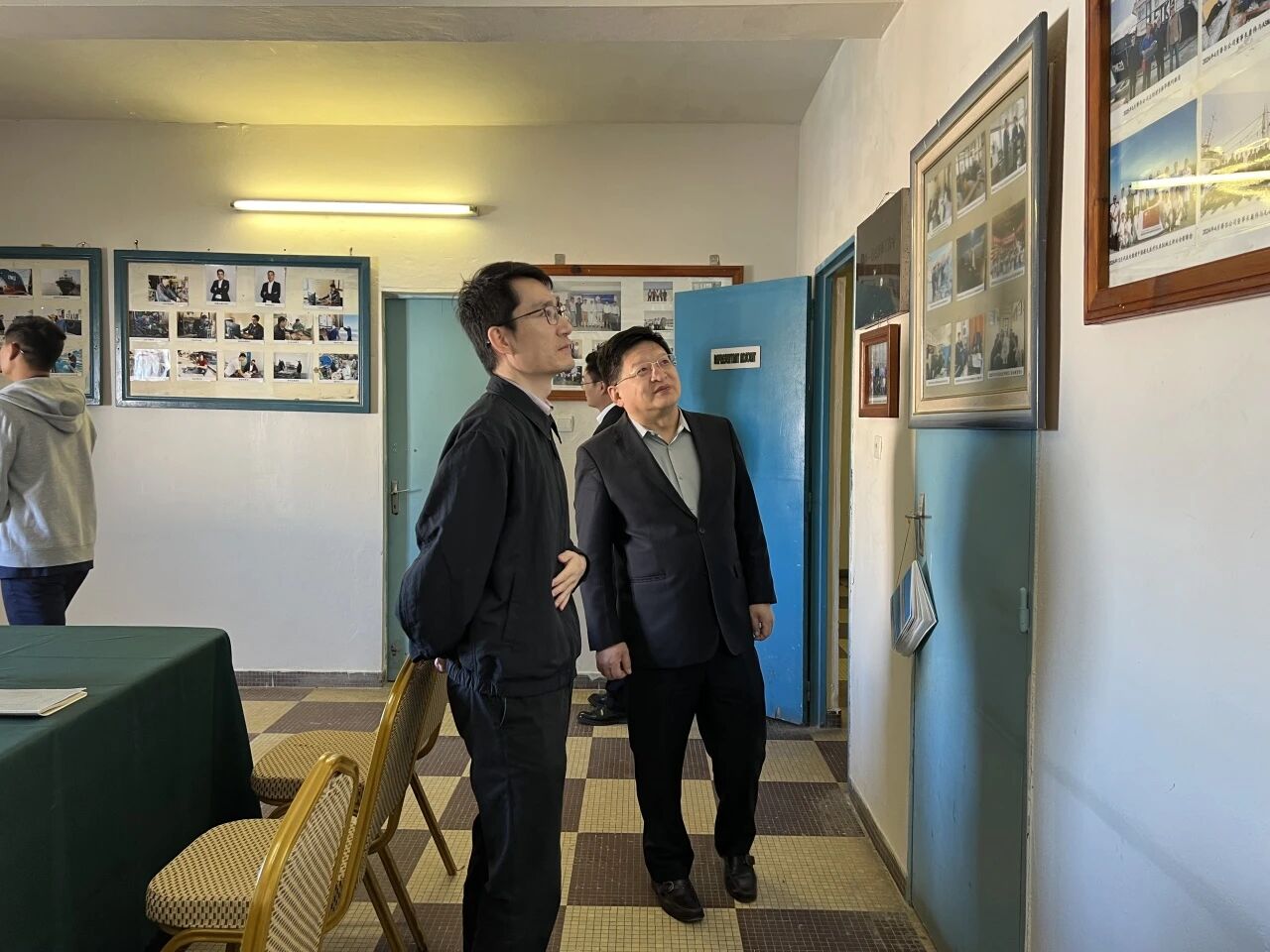 在代表处驻地,大使认真听取企业发展历程、船队规模、业务布局及海外深耕情况的汇报,仔细察看会议室陈列的荣誉奖章与工作纪实照片墙,对代表处扎根毛塔三十余年的坚守与发展成效给予充分肯定。