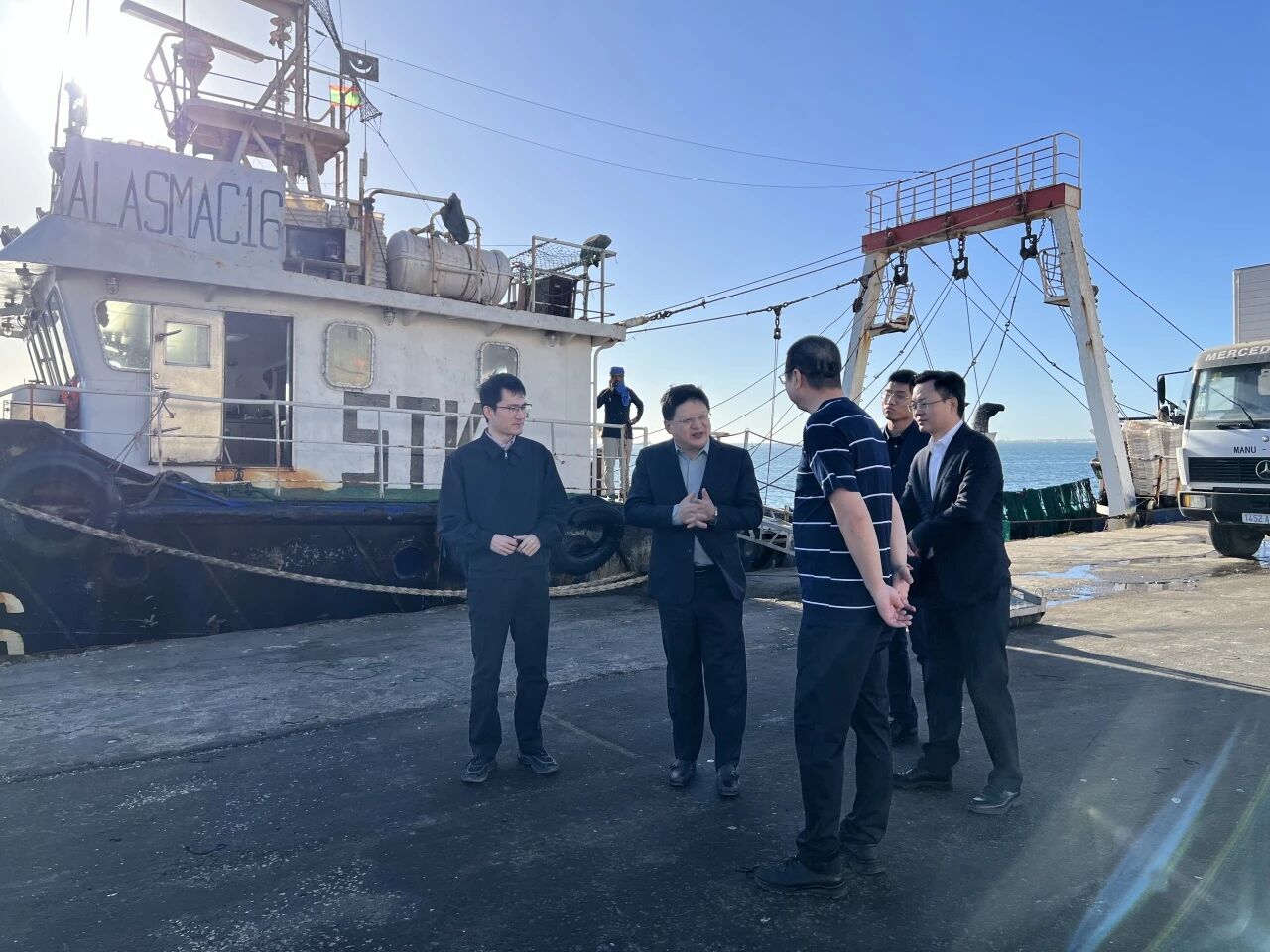 近日,中国驻毛里塔尼亚大使唐中东一行赴努瓦迪布,对上海水产集团蒂尔公司毛塔代表处开展实地调研,并看望慰问坚守海外岗位的全体员工。