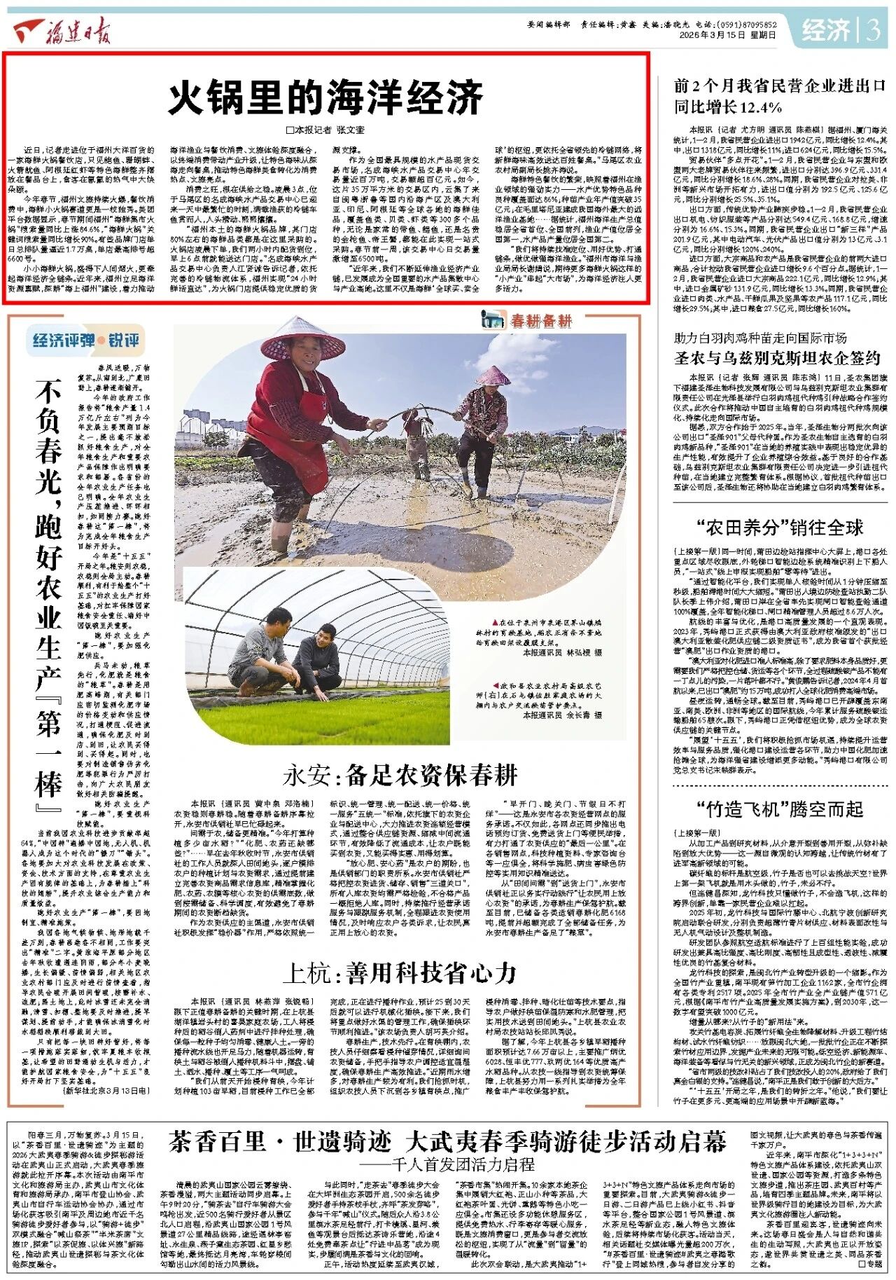“我们将持续找准定位、用好优势、打通链条,做优做强海洋渔业。”福州市海洋与渔业局局长谢婧说,期待更多海鲜火锅这样的“小产业”串起“大市场”,为海洋经济注入更多活力。