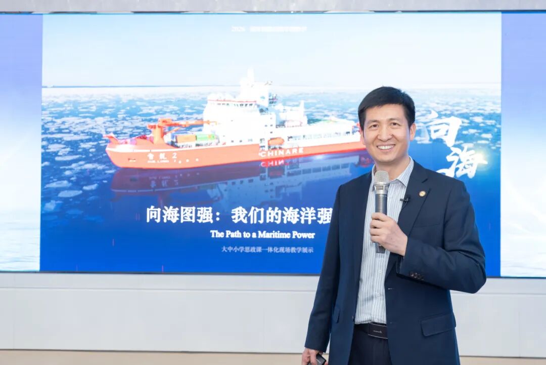 本次思政课以“向海图强:我们的海洋强国之路”为主题,创新采用师生共讲、学段贯通、实物展示等多样化模式,把思政小课堂同社会大课堂紧密结合,将远洋科考、远洋渔业国际履约等鲜活实践转化为育人素材,生动展现新时代海洋强国建设的壮阔图景,让关心海洋、认识海洋、经略海洋的种子在青少年心中生根发芽。