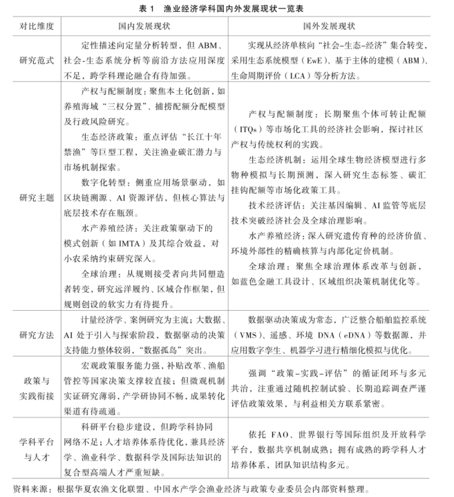 综观国内外进展,渔业经济学科正朝着“问题综合化、方法智能化、证据严谨化、视野全球化”的方向加速演进。