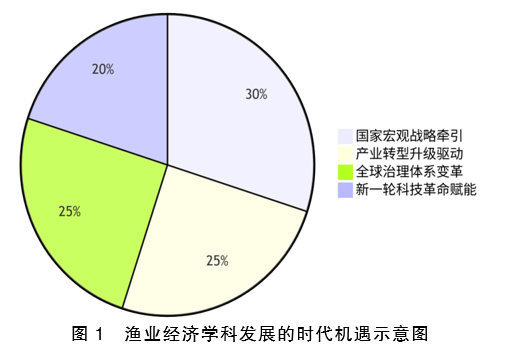 “十五五”时期是我国渔业从“规模扩张”向“质量效益”转型、从“生产主导”向“三产融合”延伸的攻坚阶段。在这一背景下,渔业经济学科的发展迎来由国家战略牵引、产业转型驱动、全球治理倒逼与科技革命赋能四维力量交织构成的战略机遇期(如图1所示)。