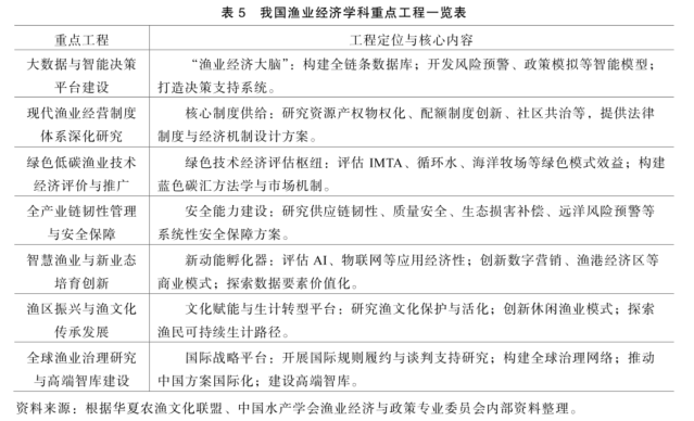 优化学科布局,引领前沿方向:建立学科发展动态评估与调整机制,持续跟踪国际前沿。重点布局并强化渔业制度经济学、渔业信息经济学、蓝色碳汇经济学、全球渔业治理、产业链韧性管理等新兴交叉研究方向。