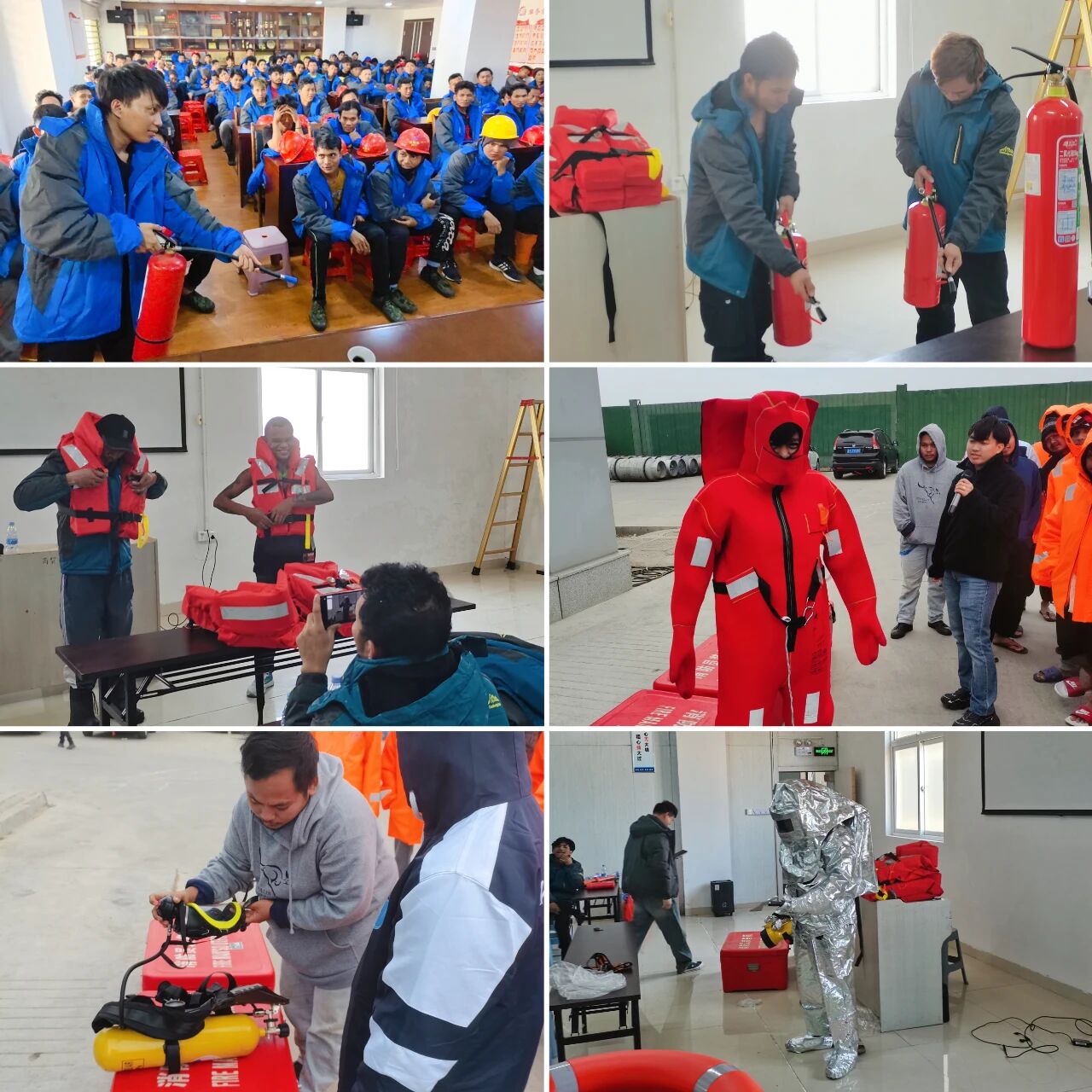 培训紧扣涉外合规、安全生产、应急实操核心目标,充分考虑外籍船员语言沟通特点,创新采用中英文双语教学+印尼语专业翻译的模式,打破语言壁垒,确保培训内容精准传递。坚持理论教学与实训交流深度融合,课程设置全面贴合远洋渔业作业实际与涉外管理规范,涵盖安全生产操作规程、涉外法律法规解读、船员合法权益保障、外事纪律要求、海上基础安全知识、船舶应急操作与逃生技巧、消防应急处置、海上自救互救等关键内容,全方位覆盖外籍船员上岗必备的理论素养与实操技能。通过系统化培训,有效强化外籍船员安全生产责任意识,熟练掌握海上应急处置基本技能,保障其在突发紧急情况下能够快速、规范开展自救与互救,保障渔船航行和海上作业安全。