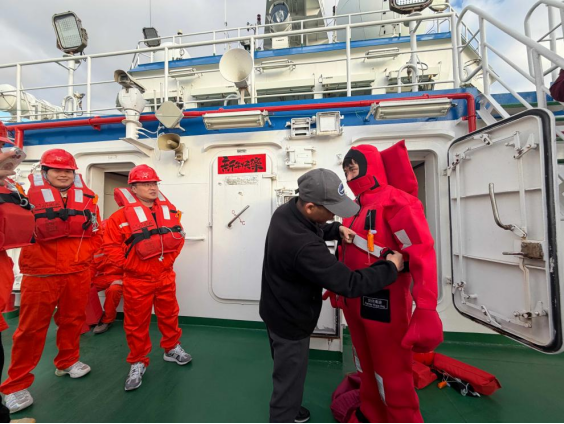 登船后,学校组织开展系统安全培训与全船参观,全面讲解驾驶台导航设备、实验室科研仪器、甲板作业装备的功能、操作规范与安全要求,帮助学生快速适应 “海上移动校园”,强化安全责任意识。师生共担风浪、携手奋进,在特殊实践场景中缔结深厚情感纽带,彰显新时代海大学子的青春风貌。