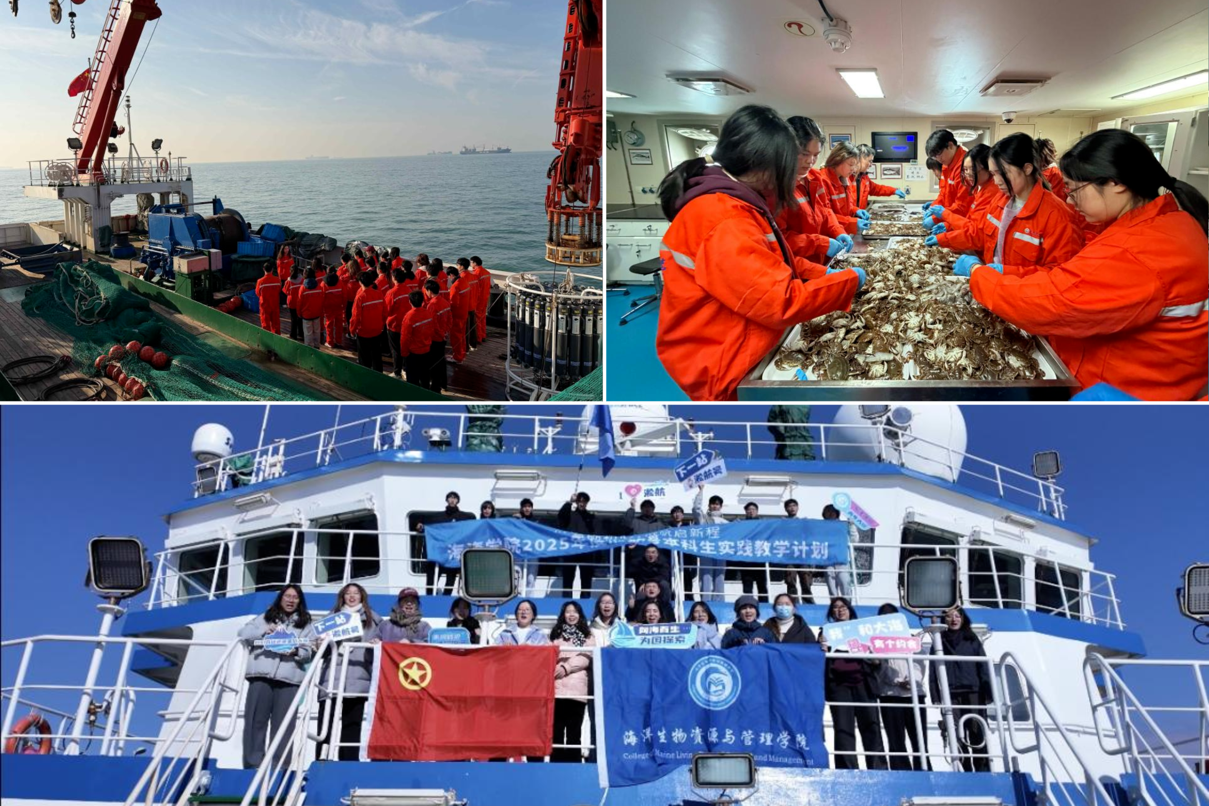 以2025年航次为例,该航次累计采集鱼类、甲壳类、头足类等 25 余个物种的生物样本近 130 斤实习期间,学生们全程参与拖网采样、生物分拣、仪器观测等全流程科研任务。拖网作业中,学生们在教师与科研人员的指导下,规范完成样本分拣、物种辨识、数据记录等工作,直面湿滑甲板、生物实操等挑战,以严谨科学态度完成每一项操作,在真实实践中印证书本知识,推动鱼类学、生物学、海洋生态学等理论知识落地生根。同时,系统参与 CTD(温盐深剖面仪)等海洋观测作业,掌握海水层理结构、水团运动等专业技能,深刻树立海洋探索的科学精神与敬畏意识,全面夯实海洋调查专业能力。