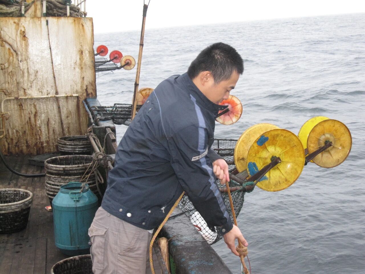 2010年,东海所科研人员在北太平洋公海钓鱿鱼